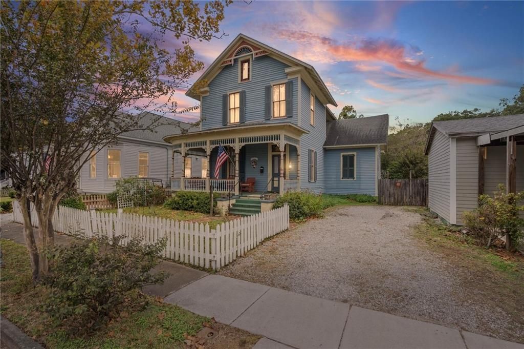 Charming Historic Home built in 1892! Step into timeless charm with this beautiful home located in the highly sought-after Oakleigh Garden Historic District. A welcoming wraparound front porch invites you inside, where you'll find classic historic features including soaring ceilings, hardwood floors, 3 original fireplaces, and elegant archways. The main floor features a gracious formal living room and dining room, a family room with custom built-in bookshelves, and an eat-in kitchen-perfect for casual gatherings. You'll also find a spacious bedroom, a hall bath, and a convenient laundry room on this level. Upstairs offers two additional bedrooms, an office (or optional third bedroom), a second hall bath, and a laundry room, providing plenty of flexible space for your needs. The attic is floored with plenty of space for storage. Enjoy relaxing on the back porch overlooking the fenced backyard. This home is within walking distance to Washington Square, Callaghan's Irish Social Club, Hummingbird Way and Oyster Bar, and all that Downtown Mobile has to offer. Come experience this historic home in person-you'll fall in love with its character, warmth, and all it has to offer!